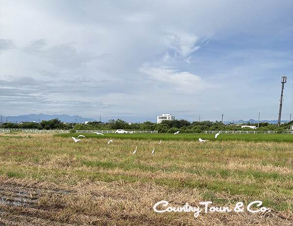 シラサギは縁起がいい鳥だそうです。神の使いとも言われているとか・・・その割にはカントリータウンの周辺には田んぼが沢山あるので、簡単にシラサギを見つけることが出来ます。