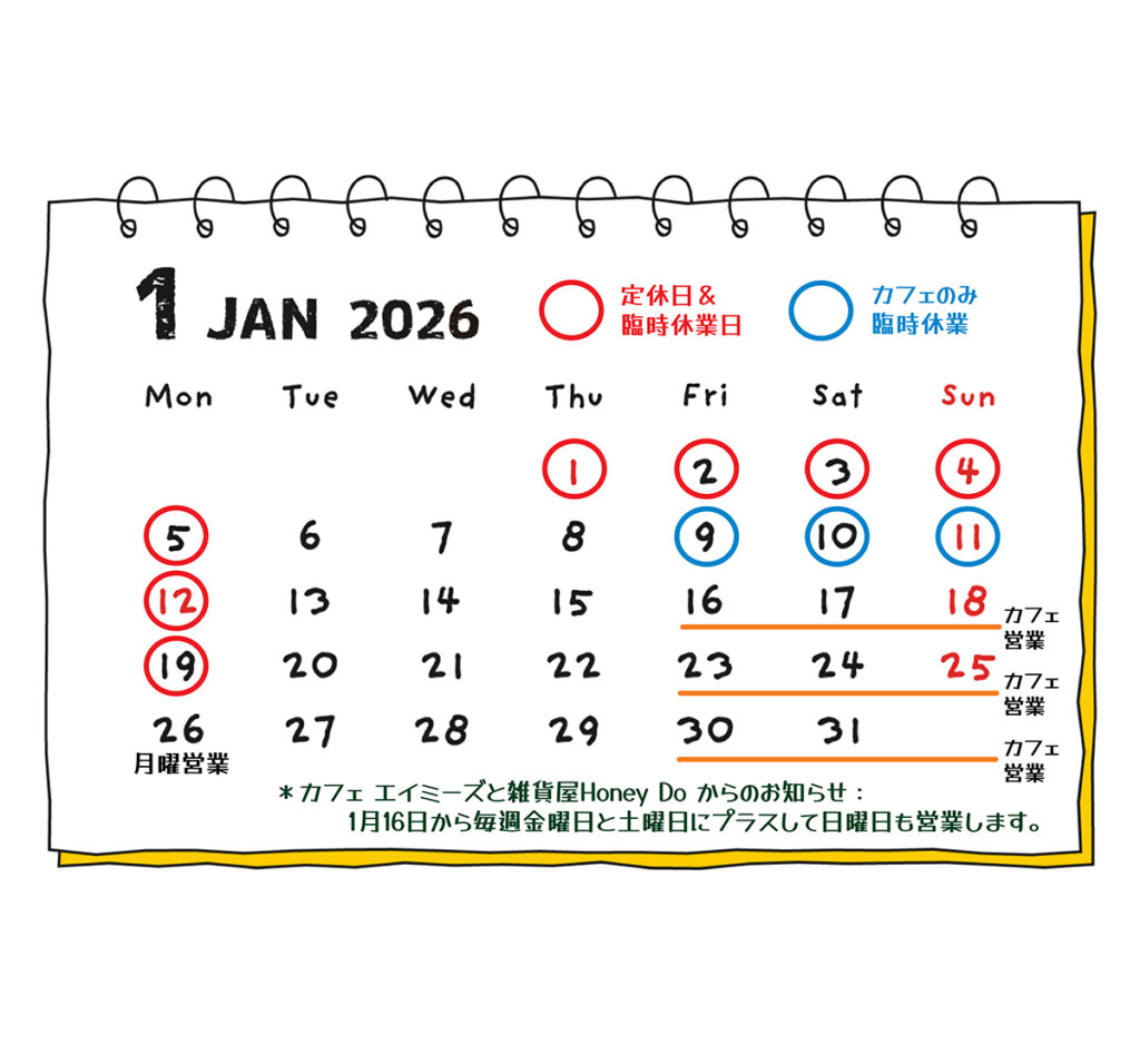 年内の営業は12月27日(土)が最終日となります。(カフェの年内営業は終了しました)