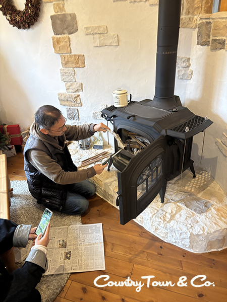 今日は、午前中にスタッフの間で簡単な薪ストーブ点火講習会が開催されました。