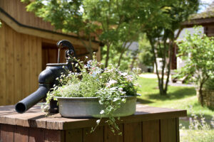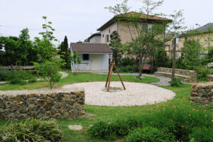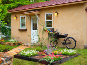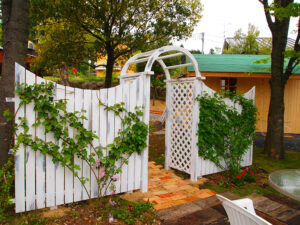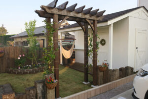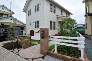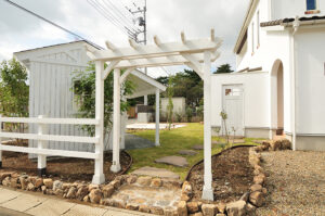 [ GardenDesign ] 素敵なガーデンデザインも提案します! 庭は単に植物を植えて、見て楽しむだけでなく、家と一体化した「暮らしを楽しむための遊び場である。」という考え方で提案するガーデンデザイン。家族と過ごす休日を、家の庭で楽しみたくなるような、素敵なガーデンデザインを提案いたします。お気軽にご相談ください。 家全体の雰囲気に合わせた物置も庭のオブジェのひとつのように、外灯やフェンスもご提供しています。